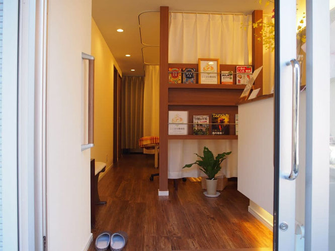 アースカラーを基調にシンプルで落ち着く空間と好評です。自転車は院前に停めていただけます。