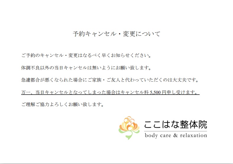 “身体が軽くなって心に笑顔の花が咲くように”──そんな想いを込めて「ここはな整体院」と名前を付けました。一人ひとりの喜びのため、心を込めて、安らぎと活力を与える施術を目指しています。